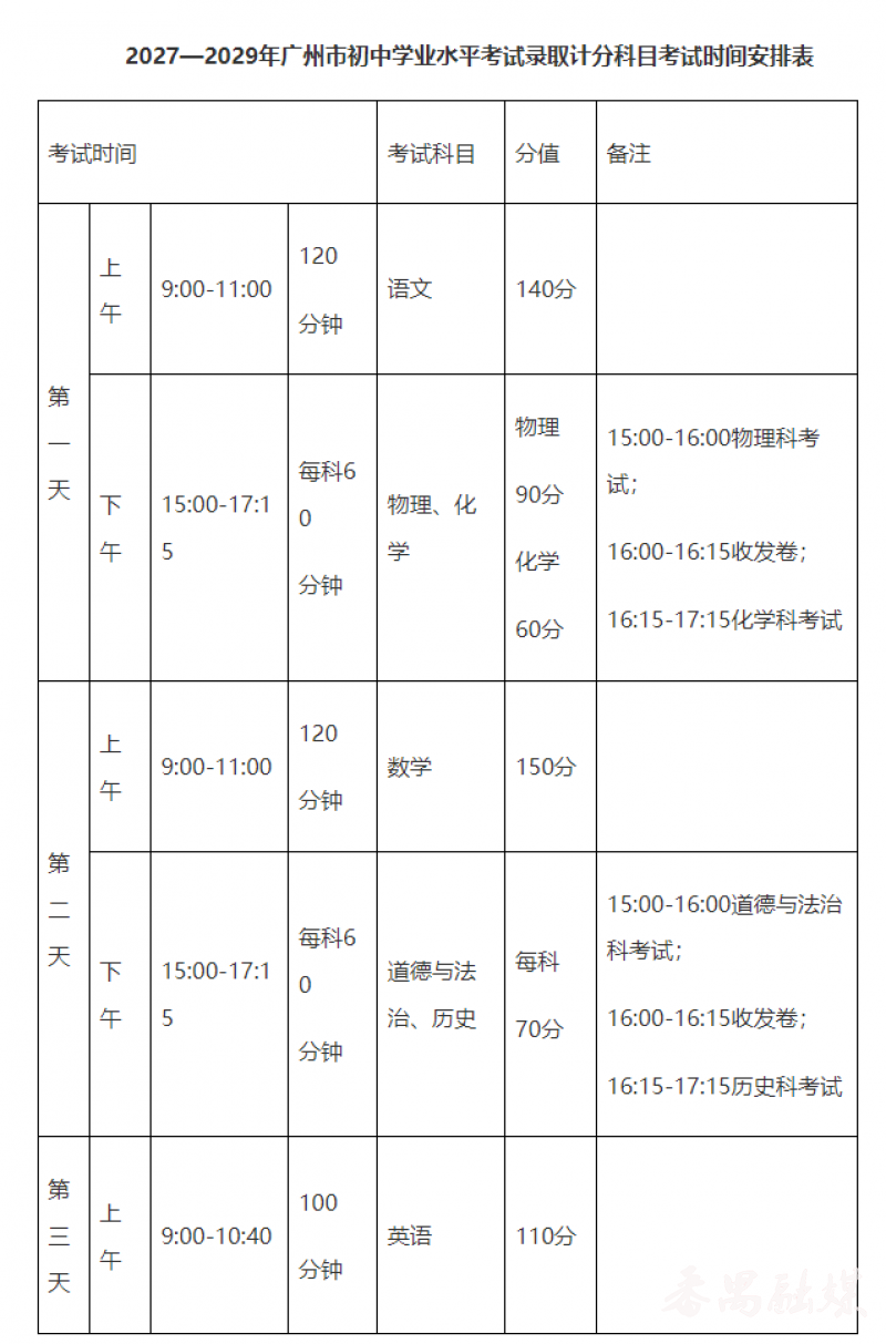 2027—2029年考试实施方案各科目的题型结构和题型分值配比与现行方案基本保持稳定,新一轮中考改革各科目的试卷容量设计和难度设置将保持延续性和稳定性,不会因为科目分值的调整而发生较大变化。经过近年来广州中考改革的实践,目前采用的考试时长较为合理,暂不作调整。